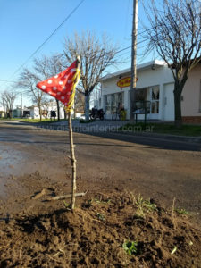 La grosera medida que fue tomada como una humorada despertó el ingenio de los vecinos que no tardaron en fabricar un banderín, al estilo corner de un campo de fútbol al que dejaron clavado en el medio de la traza.