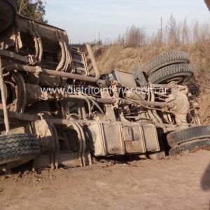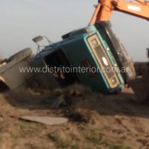 El rodado, un Chevrolet 714 que circulaba cargado con tierra giró y producto de la maniobra se desmoronó el borde produjendo la caída y vuelco dentro del profundo zanjón.