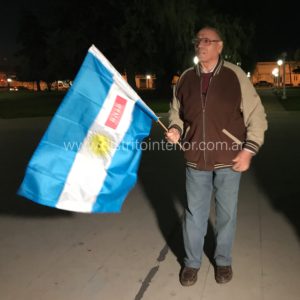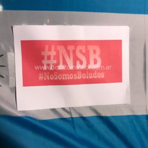 Entre los presentes se encontraba un conocido vecino quien portaba una bandera argentina con la inscripcion #NSB (No Somos Boludos).