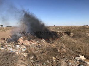 Se naturaliza lo que no está bien, como en este caso donde más de 50 metros de un camino vecinal, la continuación del que une las rutas 188 con la 33 pasando frente al circuito de motocross, luce lleno de basura que hoy ardía provocando una intensa columna de humo que se podía ver a varios kilómetros de distancia.