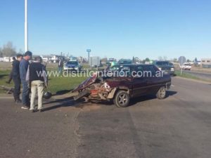 Se trata de una colisión entre dos vehículos, un Renault 9 y un camión, en el lugar traban el SAME y Bomberos Voluntarios.