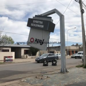 Así se encuentra el cartel de identificación de la firma Neumáticos Villegas, ubicada en Sarmiento 343, frente a la escuela Especial de Gral. Villegas.