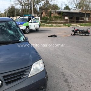 El rodado menor que iba junto a otras motos impactó a la altura de la puerta delantera izquierda y el parante del auto provocando la caída de motociclistas quienes fueron trasladados por el SAME y Bomberos al Hospital.