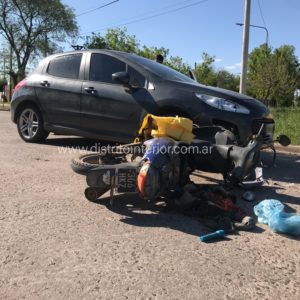 Producto del accidente el motociclista, que se quejaba de un fuerte dolor en uno de sus brazos, debió ser trasladado al Hospital donde está siendo atendido. El conductor del auto, un Peugeot 207, de apellido Banegas, resultó ileso.
