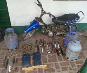 El otro en la calle Monte Santiago 534, donde se domicilia Joaquín Alvarado, con idéntico resultado al anterior. En este caso se procedió al secuestro de 15 cuchillas para faena, 1 chaira,1 polea/lazo de 8 metros aproximadamente, 1 teléfono celular marca Samsung (elemento secuestrado en la urgencia), 2 garrafas de 10 kg; 1 ciclomotor marca Guerrero 110 cc. y 1 par de botas azules con suela amarilla.