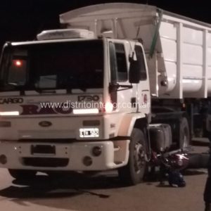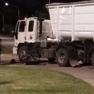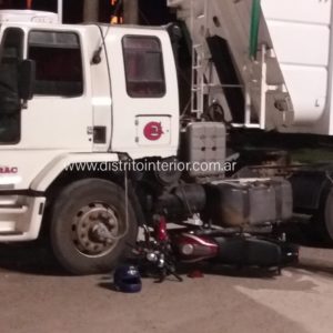 Al parecer el camión al maniobrar hacia la izquierda no advirtió la moto que iba a sobrepasarlo por ese lateral, provocando la colisión con los resultados materiales a la vista.