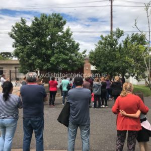 En los primeros momentos la gente estuvo parada frente a la casa pero con el correr de los minutos los ánimos se fueron caldeando y comenzaron a oírse contundentes reclamos.