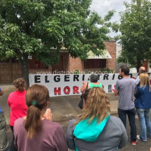 Frente a la casa hogar se aprecia un pasacalle con la inscripción “Geriátrico del horror, justicia ya”, colocado por los manifestantes que reclaman la presencia del fiscal de la causa, además del cierre del lugar y la detención de los responsables.