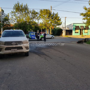 Como consecuencia, luego del toque, la moto terminó sobre la vereda en la posición que se la observa con el conductor en el piso, debiendo ser trasladado al Hospital por el SAME, visiblemente golpeado, consciente.