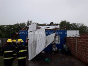 Como informáramos esta mañana la tormenta que se observó en toda la región bajó en la ciudad cabecera provocando diferentes destrozos en al menos dos viviendas a las que les voló el techo; una de ellas se encuentra frente al CIC Mínimo y la otra en cercanías de la cancha del club Deportivo, las familias afectadas Gauna y Cáceres.