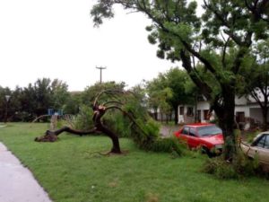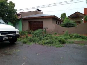 Alrededor de las 4:30 hs. una fuerte tormenta se desató sobre la vecina ciudad generando algunos daños importantes como se aprecia en las imágenes.