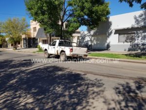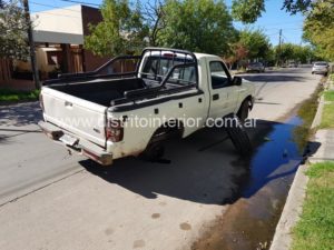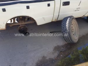 Se trata de una Ford Ranger cabina simple afectada a Servicios Urbanos que esta mañana cuando transitaba por Pringles y Alberti perdio una de las ruedas traseras.