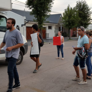 Tal como lo habían anticipado en la entrevista realizada por Distrito Interior, ante la falta de una respuesta que les permita tener la seguridad de que cobrarán su indemnización como habían acordado, se encuentran frente a la sucursal ubicada en la calle Pueyrredon entre Moreno y Rivadavia.