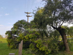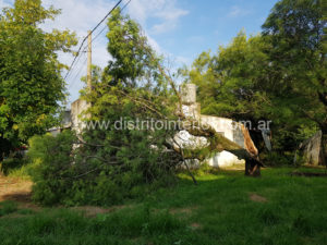 En su paso quebró gajos y ramas y volteó algunos árboles principalmente en el acceso donde uno de ellos cortó los cables de la línea que alimenta a todo el casco urbano.