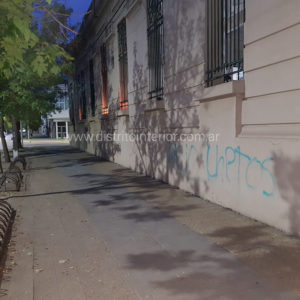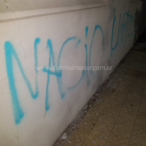 El hecho se repitió en el edificio del Instituto María Inmaculada que hoy con la primera luz del dia mostró la inscripcion con aerosol que se aprecia en las imágenes.