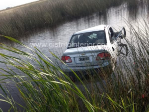 Por causas no establecidas el auto impactó desde atras al camión cuando ambos circulaban en la misma dirección (hacia Gral. Pinto), desviándose el rodado menor hacia la banquina contraria luego de la colisión, cayendo dentro del agua.