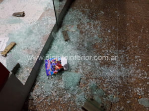 Dado lo reciente del caso, se presume que han forzado la puerta doble hoja hacia afuera logrando que una de ellas ceda y explote, motivo por el que los vidrios se observan en la vereda y no dentro del local.