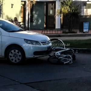 De acuerdo a los datos recabados los rodados circulaban por Gowlan en sentidos opuestos, separados por el boulevard, y al llegar a la intersección con San Martín el auto, que habría intentado doblar embistió a la bicicleta provocando la violenta caída de la mujer que fue trasladada al Hospital local.