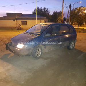 Llamativamente la Scenic se encuentra con las luces encendidas, dañada por el choque, sin su conductor y los vidrios delanteros bajos.