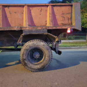 Un equipo municipal se encontraba en el lugar mencionado cuando una Renault Scenic que transitaba en dirección Castelli – Nocochea chocó al vehículo de atrás impactando en una de las ruedas traseras.