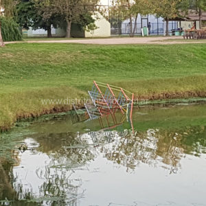 Vándalos arrojaron un juego a la laguna del Parque