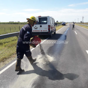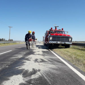 Una falla provocó el derrame del aceite hidráulico que se esparció sobre la cinta asfáltica en gran cantidad, provocando además el detenimiento de la maquinaria que fue remolcada hacia la banquina por una camioneta.
