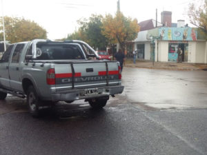 En el momento del impacto llovía sobre la ciudad lo que podría haber contribuido al choque que se produjo cuando el auto que se movilizaba por Berutti colisionó a la camioneta en el lateral trasero, a la altura del guardabarro, cuando lo hacía por Rivadavia.