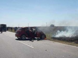 Allí un Peugeot 208, conducido por Olga Scardino, quien viajaba de Fortín Olavarría hacia América junto a dos de sus nietos, colisionó contra un camión Mercedes Benz que pertenece a la familia Miranda y que era conducido por Fabio Galarza.