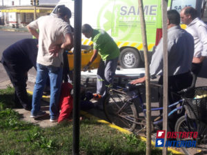 La reacción del automovilista fue inmediata y detuvo la marcha para asistir al herido que luego de unos minutos de atención por parte de vecinos fue trasladado por el SAME al Hospital con un fuerte dolor en uno de sus tobillos.