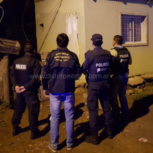 Efectivos de la Policía Comunal y de la DDI Trenque Lauquen realizan operativo en un domicilio de la cortada Frías e H. Irigoyen del barrio Ciclón de Gral. Villegas.