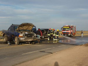 Trabajan en el lugar efectivos de la Departamental Realicó, delegación Maisonnave y del Puesto Caminero II, todos coordinados por el Comisario Alejandro González Palleres, responsable de la Departamental Realicó siguiendo las directivas del fiscal interviniente, personal sanitario del hospital local y Bomberos Voluntarios locales. (Fuente y fotos Info Tec)
