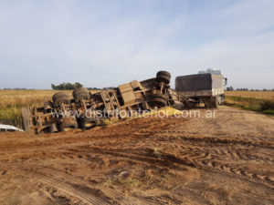 El hecho tuvo lugar esta mañana a primera hora cuando un camión tiraba al acoplado siniestrado. Provenía de la estancia La Queca, al llegar al alteo cercano a la ruta 188, intentando esquivar a un camión que se había encajado en la arena de la traza. En el lugar se encuentra una alcantarilla donde se une un camino convencional con el alteo – defensa.
