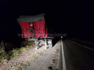 El único indicio de lo ocurrido es el semirremolque (batea) que se encuentra estacionado sobre la banquina en el lugar mencionado en el inicio y algunas huellas que se observan a simple vista.