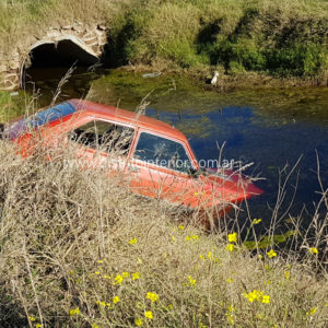 El Fiat 147 fue encontrado por un efectivo de la Patrulla Rural alrededor de las 15:30 hs. dentro de un profundo zanjón con agua que se halla en las inmediaciones del predio rural y la ruta 188, frente a la cava en la que tiempo atrás se ahogó un joven.