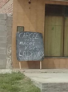El cartel que sentencia la gestión presidencial y reafirma el paro se encuentra ubicado frente a una pizzería de Gral. Villegas ubicada en Av. Mitre.