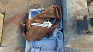 Una vez que llegó personal especializado y determinó que no se trataba de un artefacto explosivo, determinaron que se trata de un revólver Magnum calibre 44 Taurus.