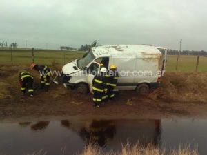 El rodado, una Renault Master con dos ocupantes se despistó en el camino asfaltado que une ambas localidades del partido de General Villegas, desviándose hacia la banquina y volcando en la misma.