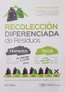 A través de un folleto informativo se explica cuál es el residuo húmedo y cuál el seco y los días de recolección en los que pasará un camión diferenciado que retirará solamente el seco y en bolsa verde.
