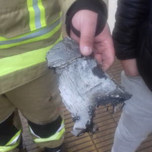Los Bomberos Voluntarios acudieron inmediatamente e inspeccionaron el techo y detectaron que afectó un trozo de membrana pero no hay en ese sector cables de electricidad ni caños de gas.