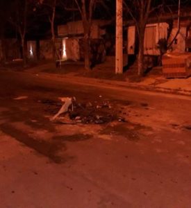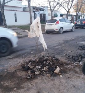En la calle Alberti en su cercanía con la Av. Mitre luce tal como se ve este indicador de precaución donde luego de un prolongado período de agua fluyendo hacia la superficie, pudo haberse roto, o pudieron haberlo roto. Seguramente se intervino para su reparación, pero el estado en que se encuentra lo hace verdaderamente peligroso para quienes circulen por el lugar.