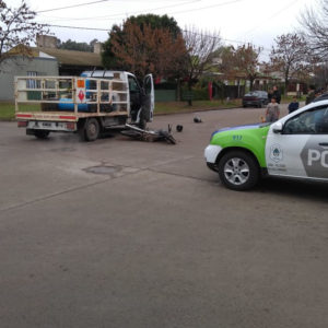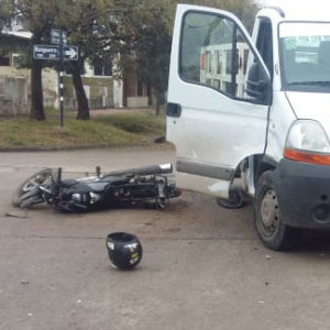 Esta mañana a las 11:30 hs. en calle Matheu y Baiguera de Gral. Villegas se produjo un violento choque entre dos vehículos, una moto y un utilitario utilizado para el reparto de gas.