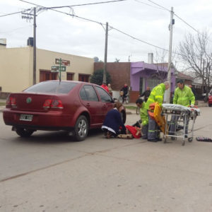 La persona a bordo de una moto es un hombre mayor de edad, joven, que quedó tendido luego del impacto. Éste circulaba por Vieytes, sin casco según testigos.