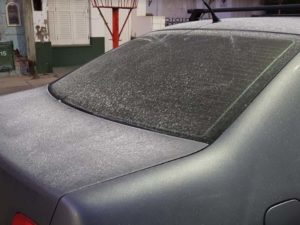 Las gramineas y particularmente los vehículos que pasaron la noche a la intemperie son la muestra más clara de la «helada de película» que ha caído en la zona cumpliendo estrictamente lo anunciado por el Servicio Meteorológico Nacional.