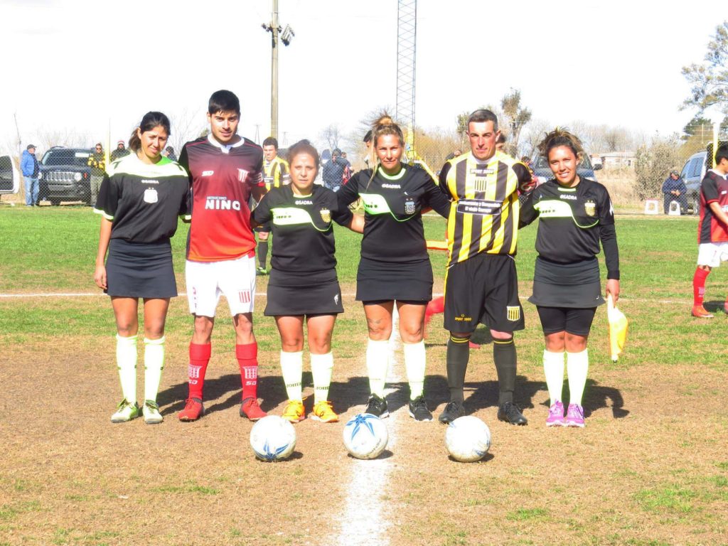 El partido disputado entre Social y Deportivo Arenaza y San Martín de Roberts tuvo la conducción arbitral de Magalí Vidal, Yanina Martínez de General Villegas y Lucía Balbidares de General Pinto (la primera desde la izquierda). Junto a ellas, Rocío Melo de la liga de Lincoln y responsable de la Escuela de Árbitros de Gral. Villegas (segunda desde la derecha). (Fotos El Diario de Lincoln)