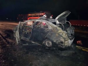 El automóvil, un Chevrolet Prisma circulaba en sentido Banderaló – Villegas detrás de un camión Scania al que impactó a la altura del paragolpes, causa que motivó la destrucción del rodado menor que luego se incendió, quemándose por completo.