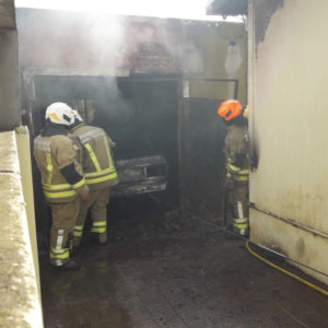Esta mañana pasadas las 11:30 hs. se prendió fuego un automóvil Renault 9 que se encontraba estacionado en el interior de un garaje ubicado en la parte posterior de una vivienda del barrio municipal, calle Sagardoy.