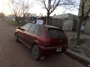 Sobre el auto de la familia que se encuentra estacionado en la calle Larrea al 1349 se observan varias prendas de mujer, hombre y niño, cuidadosamente dobladas para que quien las retire pueda usarlas de inmediato.