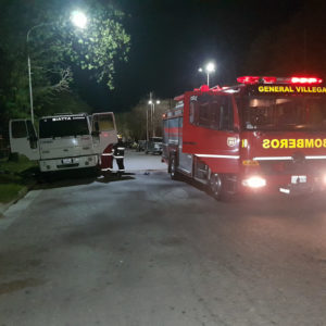 Esta noche, 22:30 hs. un Ford Cargo que se encontraba estacionado sobre calle Perez Chacón, sin acoplado, se incendió sufriendo importantes daños en su cabina.