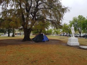 Los acampantes son tres hombres y la madre de uno de ellos que exigen al Ejecutivo les otorgue un trabajo porque en las condiciones de desocupación que viven no pueden seguir, sostuvieron ayer al ser consultado luego de haber decidido este método para hacerse oír.