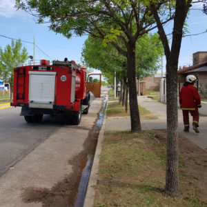 Al llegar al terreno ubicado sobre calle Fasciolo, frente al ta que de agua, se constató que se trataba efectivamente de un incendio de malezas y basura, pero controlado por quien lo había generado.